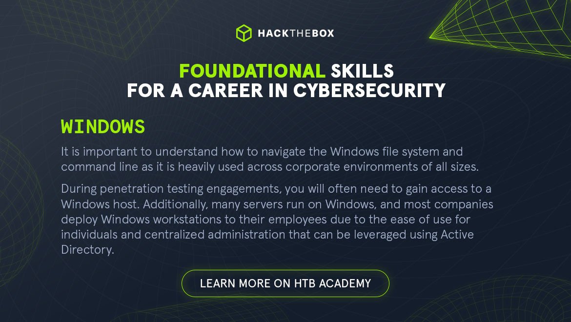 During penetration testing engagements, you will often need to gain access to a Windows host. Additionally, many servers run on Windows, and most companies deploy Windows workstations to their employees due to the ease of use for individuals and centralized administration that can be leveraged using Active Directory.
