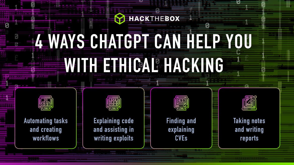 ChatGPT is a useful personal tutor and assistant ready to explain concepts or techniques and act as a guide, especially for those just beginning to learn about ethical hacking and using Hack The Box (HTB).