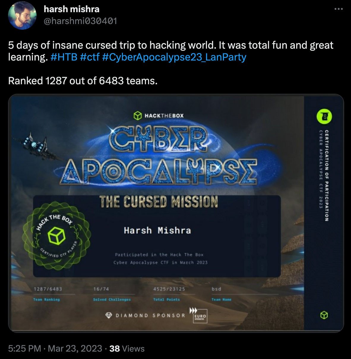 Cyber Apocalypse 2023 was a blast. 12,553 hackers from 170 countries solved exciting challenges, connected on our Discord server, and pushed their skills to the limit!