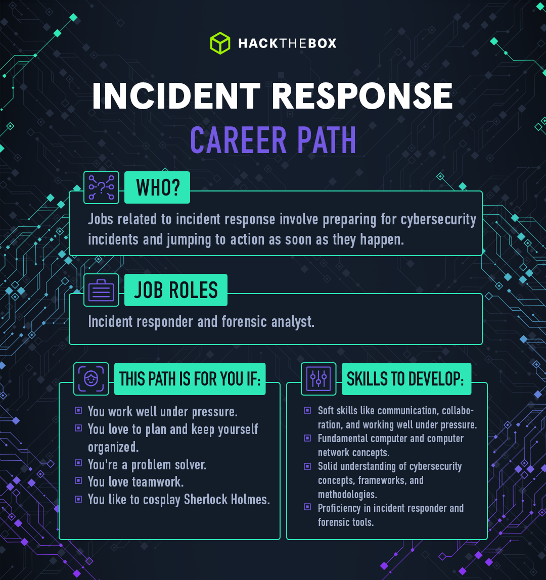 Jobs related to incident response involve preparing for cybersecurity incidents and jumping to action as soon as they happen.