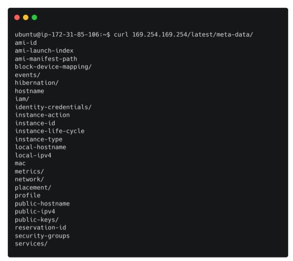 This metadata can contain sensitive information such as credentials, if the administrators have attached an IAM role to the EC2 instance. As the metadata is only accessible internally, this may not appear to be particularly interesting from a security perspective. The presence of this metadata, on the other hand, makes Server-Side Request Forgery (SSRF) vulnerabilities in applications that are hosted on compute instances even more serious.