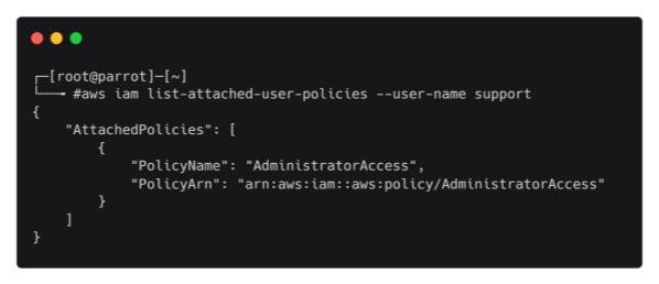 aws iam list-attached-user-policies --user-name support