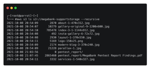 aws s3 ls s3://megabank-supportstorage --recursive