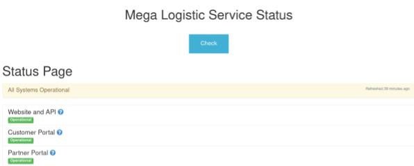 This time the (fictitious) customer Mega Logistic has requested a security assessment. Inspection of their website reveals multiple services, a portal, and link named Status.