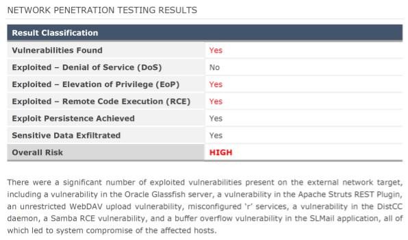 The report contains a number of high and critical vulnerabilities that, if not addressed, may allow malicious actors to compromise the company network and access their data.
