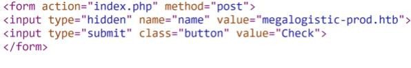 Examining the source code reveals that a hidden form is used to pass the default value of megalogistic-prod.htb to the backend page, which is somehow involved in obtaining the status.