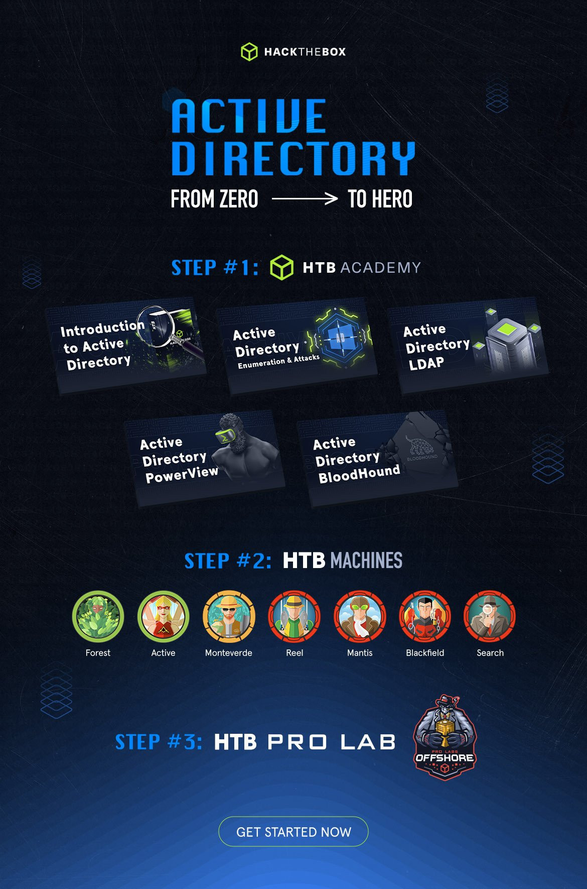 The AD Track is an excellent resource for practice. Tracks are curated lists of machines and challenges that users can work on to master a particular topic. This track contains boxes of varying difficulties with various attack vectors. If you cannot yet solve these boxes on your own, you will still learn a lot by following a walkthrough or video. The more you are exposed to AD (and any topic), the more comfortable you will become, and eventually, things that right now may seem completely foreign will become second nature.