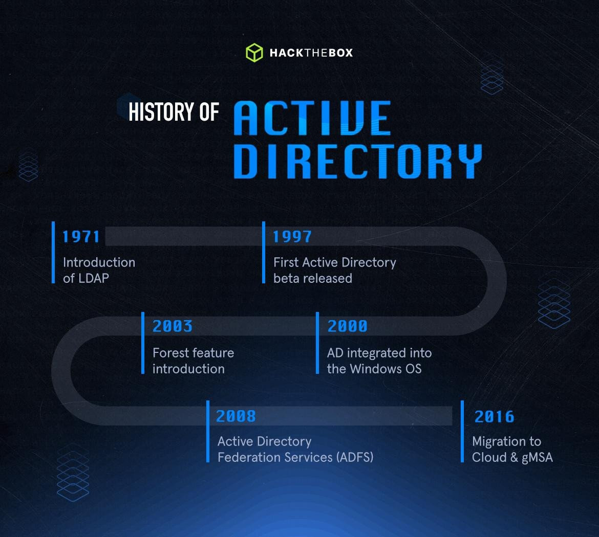 LDAP, the foundation of AD, was first introduced in 1971. The X.500 organizational unit concept is a precursor to AD. This was created by Novell and Lotus and released in 1993 as Novell Directory Services and can be considered the earliest version of all directory systems.