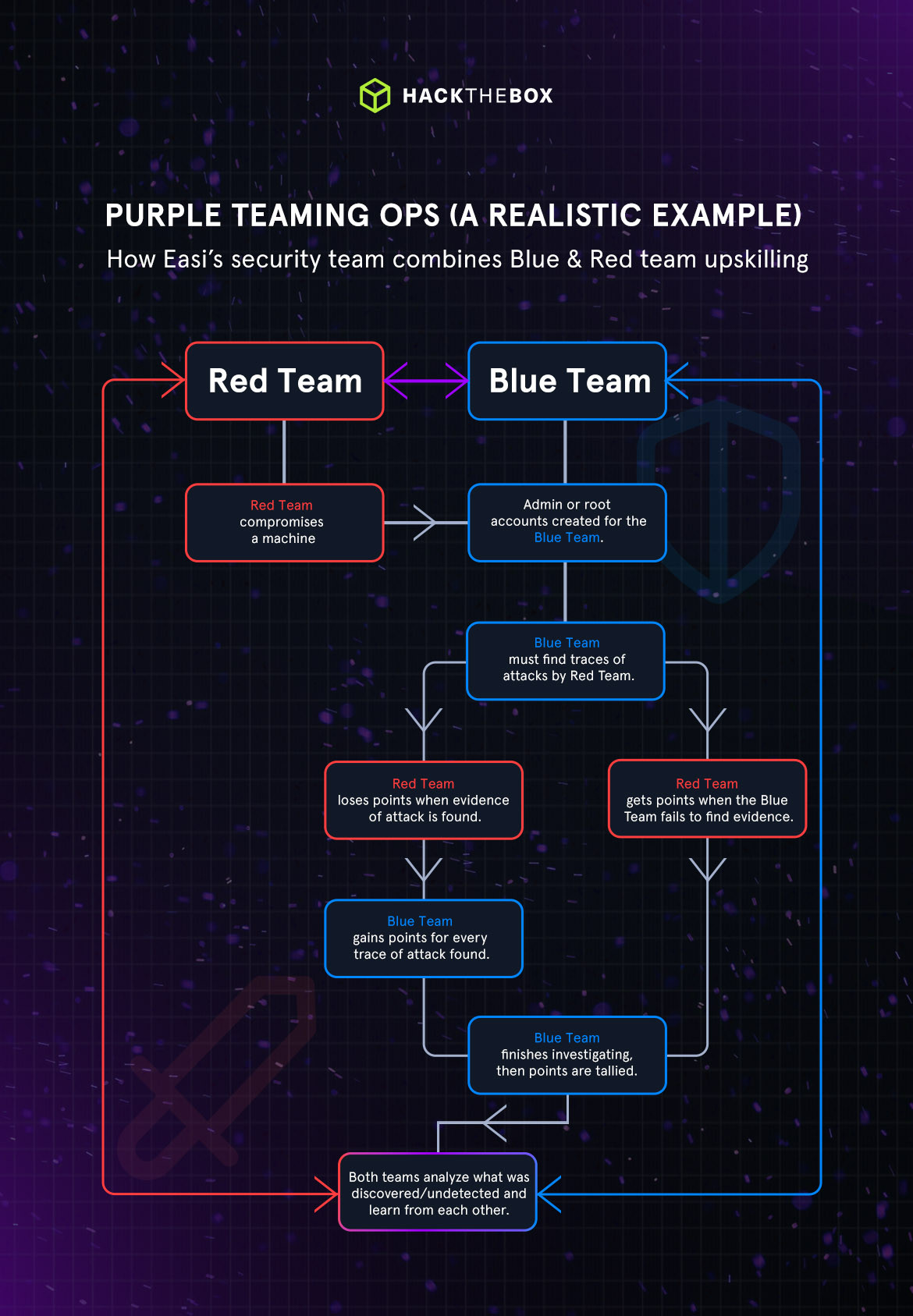 Easi accounted for this union of observable results by creating their TDI: A friendly competition that serves as a purple teaming activity. Both teams get to learn and practice both offensive/defensive security in a live environment.