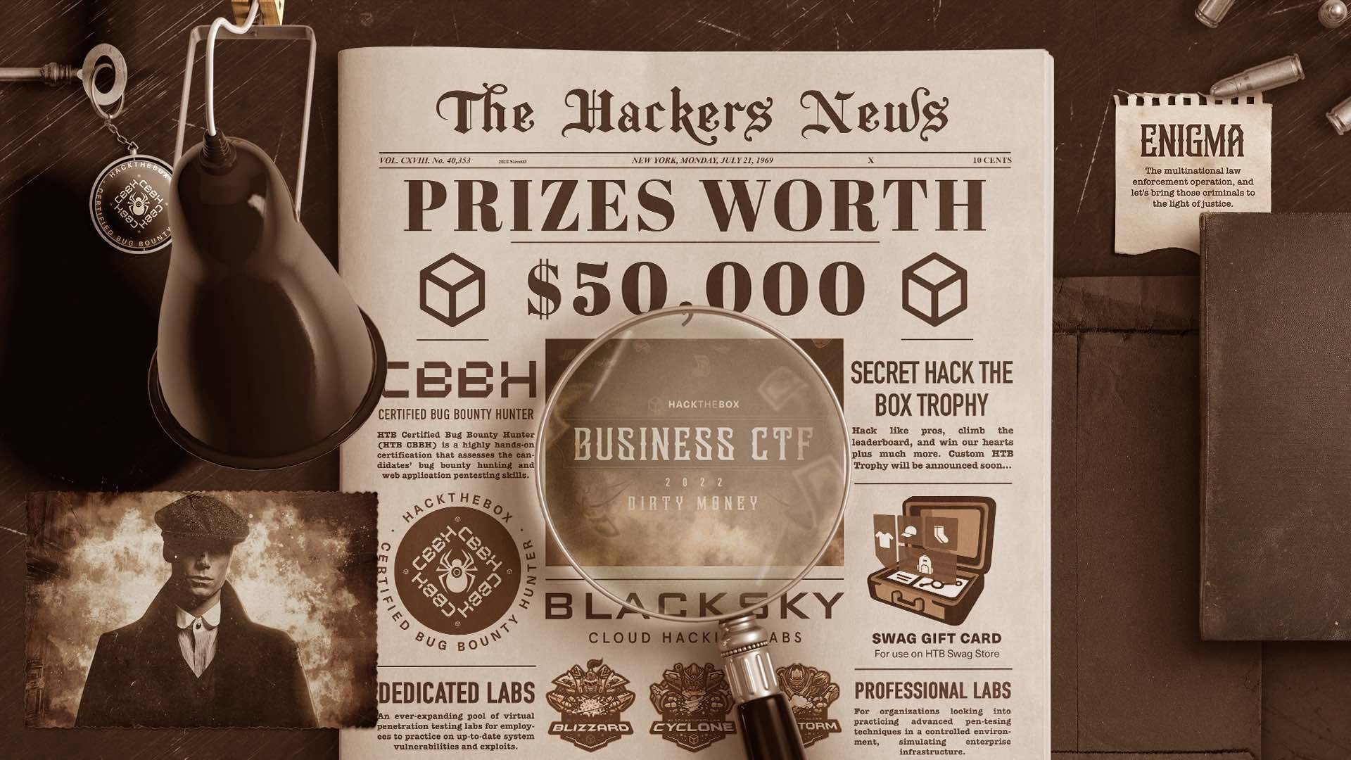 Financial cybersecurity (or "Dirty Money" as we're calling it) is this year's Business CTF theme. Your team will play as the multinational law enforcement operation, ENIGMA, and test its skills by pursuing malicious actors engaging in crypto laundering, wire fraud, phishing campaigns, malware, ransomware strains, and more.